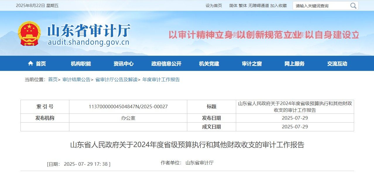 近日,山东省审计厅发布《山东省人民政府关于2024年度省级预算执行和其他财政收支的审计工作报告》(以下简称“报告”),其中,关于养老保险基金的相关内容引发关注。
