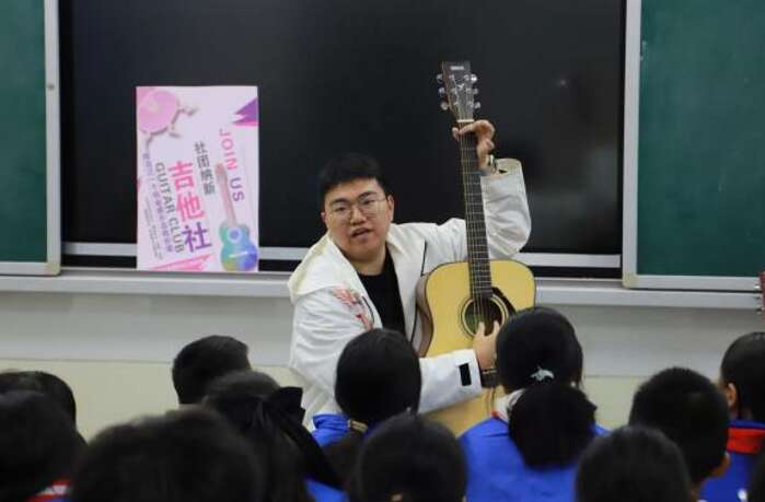 “素质教育”成为照进贵州山区中学的一束光。研支团成员李洪达、秦睿遥结合自身特长,分别为孩子们开设吉他、播音主持社团。在文化艺术节中,山村孩子们抱着吉他自信大方地演绎《我相信》,站在聚光灯下声音洪亮地朗诵《永不消逝的声音》。