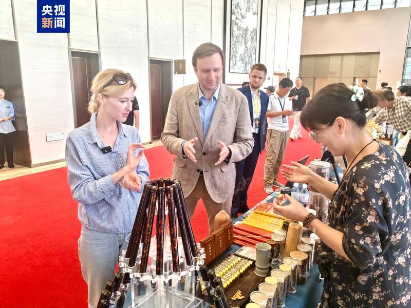 在青岛国际会议中心非遗文化体验与展示区,CGTN俄语记者通过新媒体直播,带领海外受众沉浸式体验崂山茶艺、面塑技艺、孙氏沉香制作等中国非物质文化遗产的独特魅力,生动传递中华文化的深厚底蕴与当代活力。