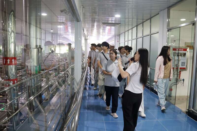 学生在蒙牛乳业泰安工厂的生产车间参观学习。(团山东省委供图)
