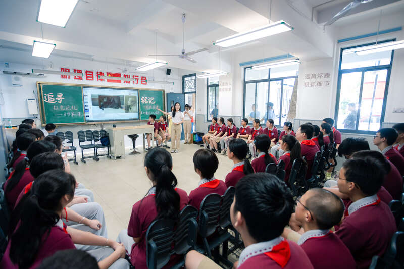 主题班会上,国网苏州供电公司员工、“苏供薪火”志愿者毛琰懿分享了团队走访烈属、补全英烈故事的经历。“房月雁老人的父亲房铭德是‘老虎团’中的一员,遗憾的是,直到父亲牺牲,父女俩都从未见过面……”她讲述了房铭德烈士之女房月雁的故事,以及团队如何通过一份红色档案弥补了房月雁一生未能与父亲相见的遗憾,许多学生听后感动不已。