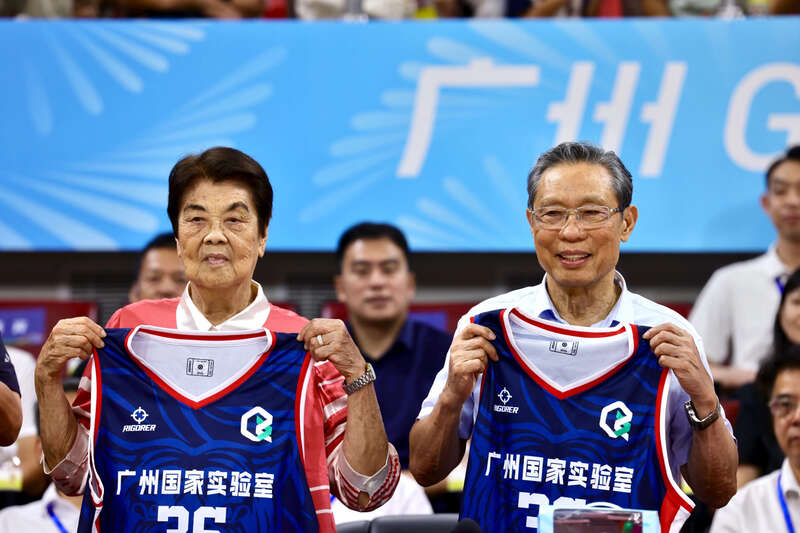 在开幕式上,钟南山院士回顾自己的运动经历并寄语参赛队伍:“‘坚韧与拼搏’是科技精神与体育竞技精神的体现,要永不言弃、力争上游,将赛场意志投入科研攻关。”在“致敬科学·共叙情谊”环节,钟南山院士和夫人李少芬(前国家女篮名将)获赠印有姓名的定制球衣。