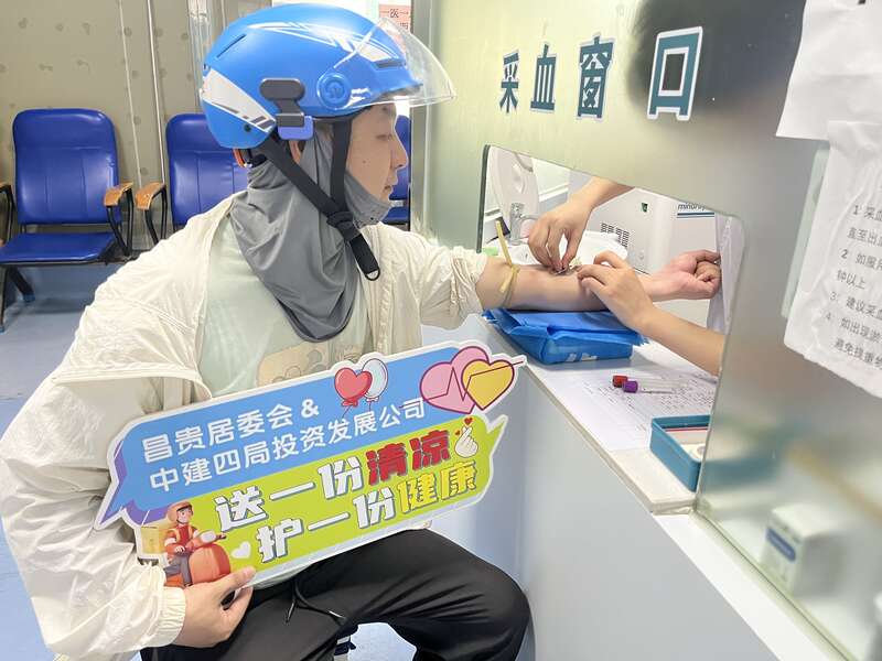 滨湖世纪社区辖区面积5.56平方公里,多为密集型高层住宅,小型商户多,以青年人为主,新就业群体超2000人。本次市集,中建四局携手滨湖世纪社区专门开辟“关爱骑手”专区,提供饮水补给、义诊咨询、交通安全与反诈宣讲、电动车检修等暖心服务。