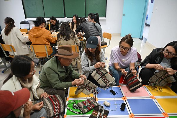 2025年9月1日,2025年西藏自治区拉萨市第二期“青年夜校”正式开班。图为夜校学员上牛羊毛编织课。