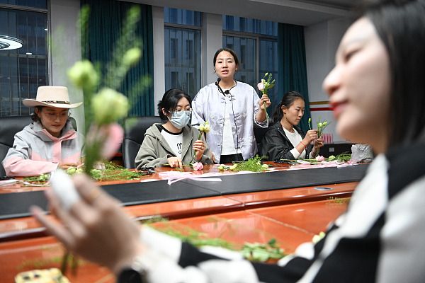 图为夜校学员上花艺课。