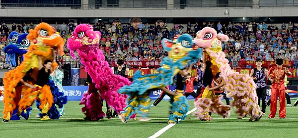 江西景德镇:舞狮表演亮相“赣超”