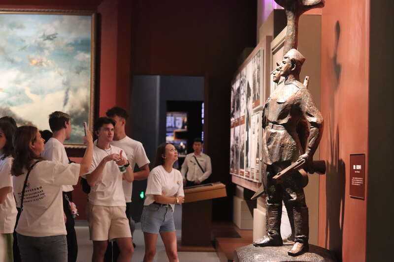 9月3日,北京,中俄青年代表在中国人民抗日战争纪念馆参观《为了民族解放与世界和平——纪念中国人民抗日战争暨世界反法西斯战争胜利80周年主题展览》。主办方供图