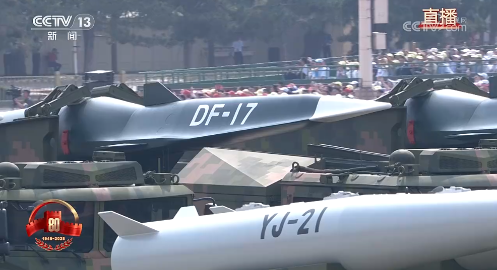 阅兵式解说词介绍,受阅的鹰击-21、东风-17、东风-26D导弹飞行速度快、突防能力强、命中精度高,是具备全天候作战能力的新型杀手锏。