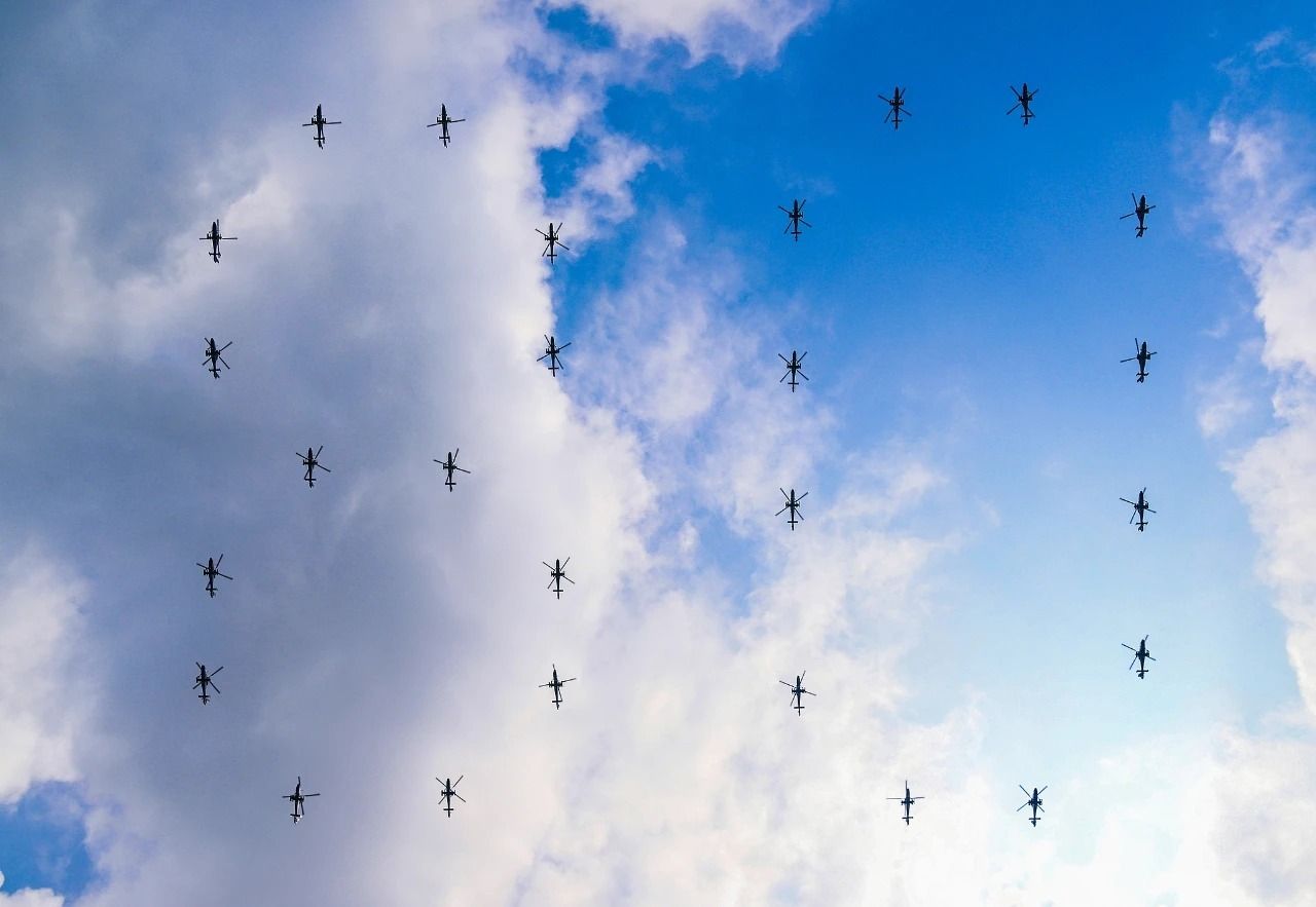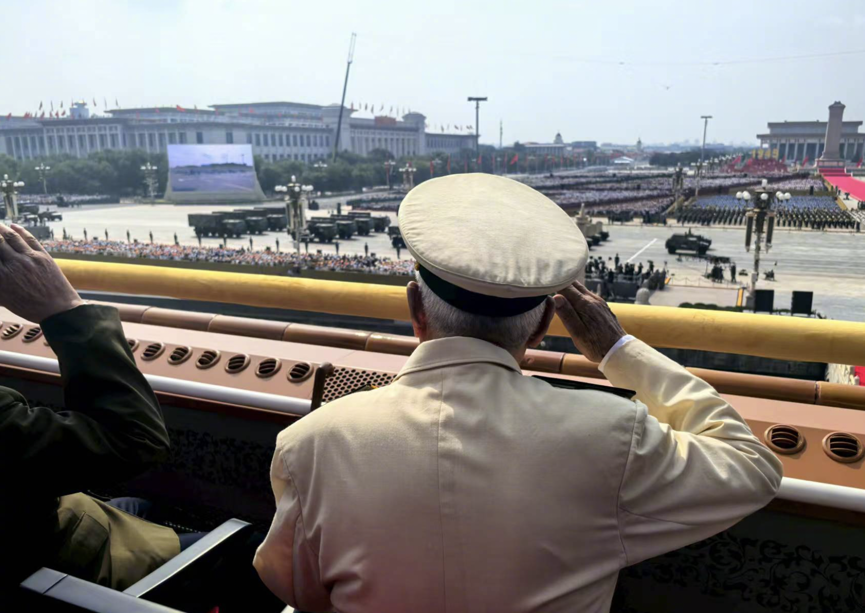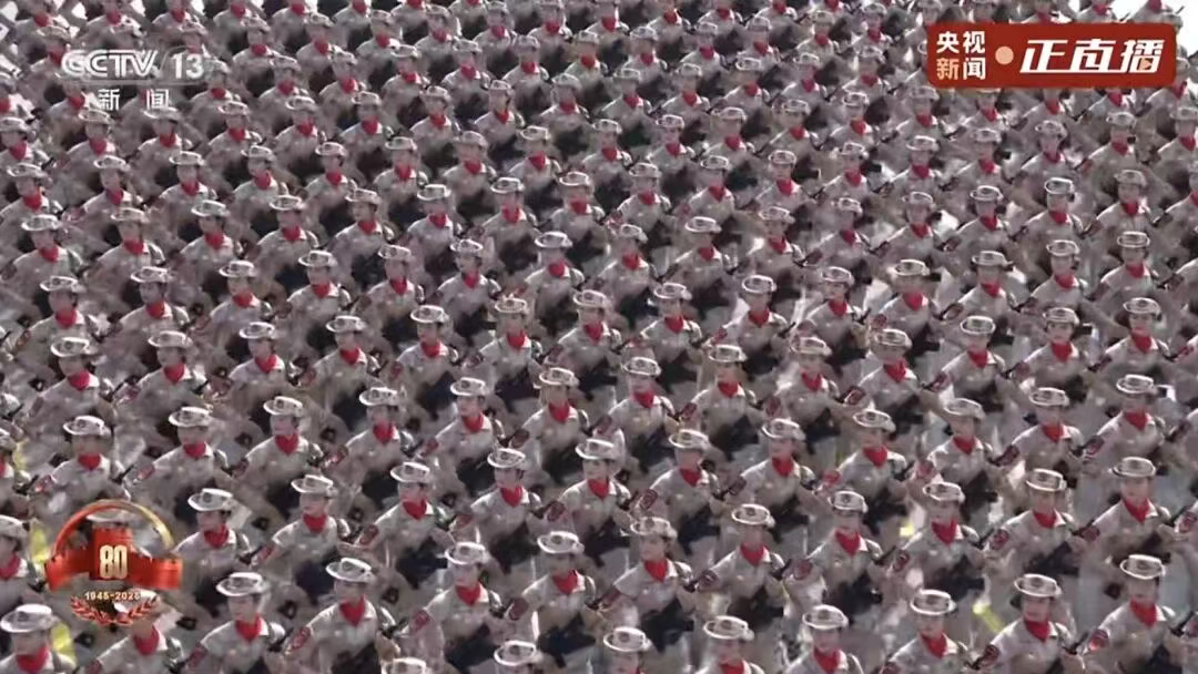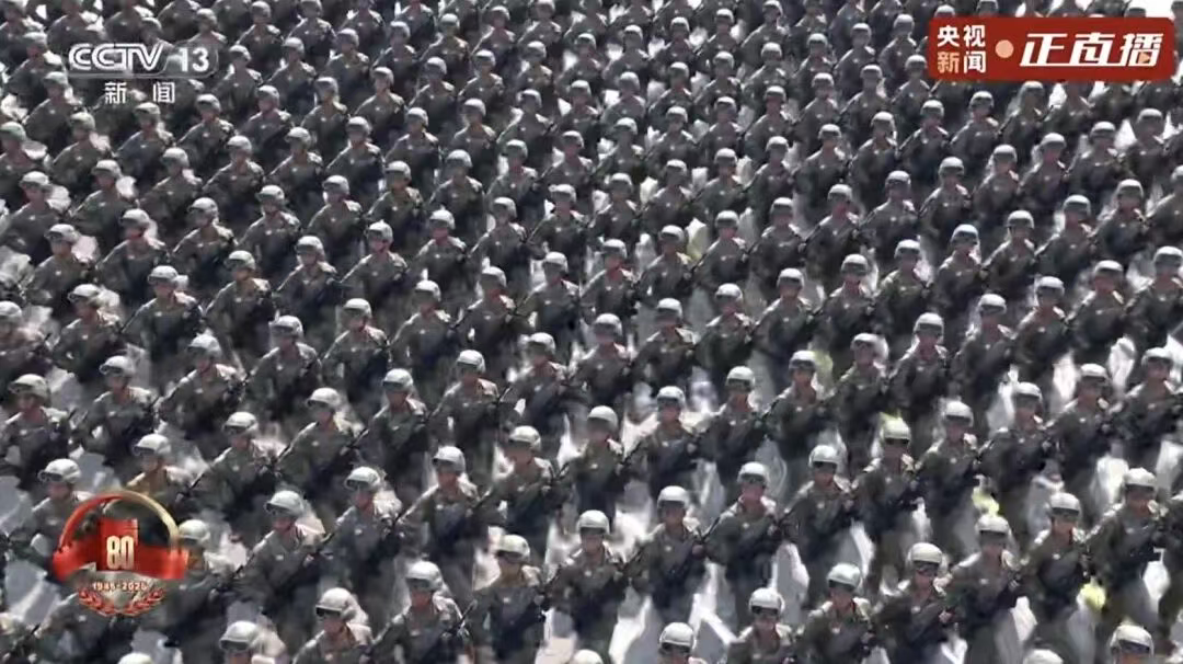 80面抗战英模部队荣誉旗帜组成战旗方队