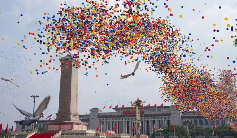“正义必胜”“和平必胜”“人民必胜”条幅