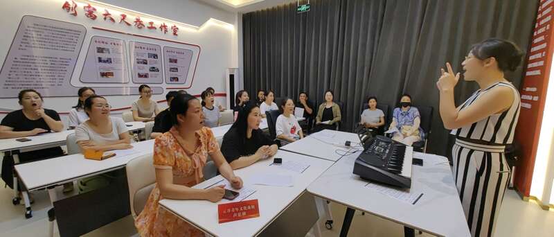 为确保教学质量,合肥市文化馆选派经验丰富的教师为学员量身定制方案:吉他课从持琴姿势、基础和弦教起,让零基础学员快速实现自弹自唱;声乐课则从气息、音准训练入手,通过互动帮学员建立自信。
