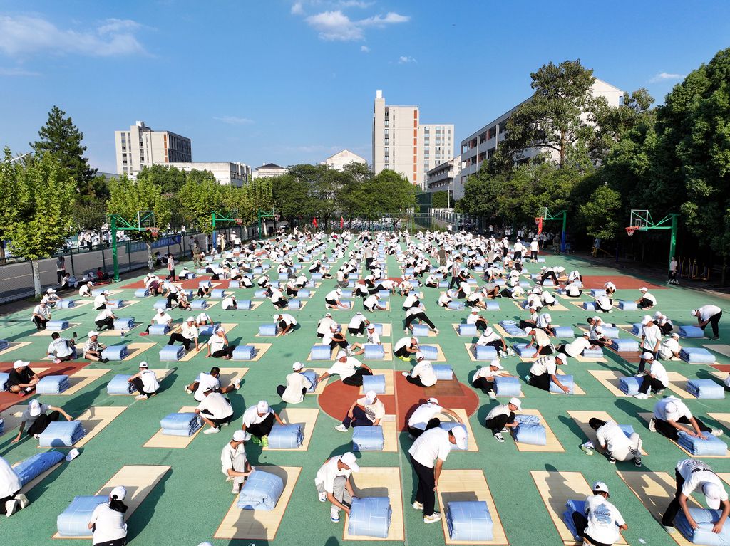 浙江东阳:学校1600名新生上演“千人叠被”大赛