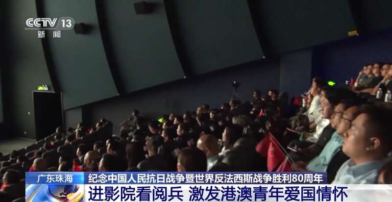 9月3日上午,广东珠海和横琴共四家影院同步直播纪念中国人民抗日战争暨世界反法西斯战争胜利80周年大会,以影院级视听技术为观众带来沉浸式的观看体验。