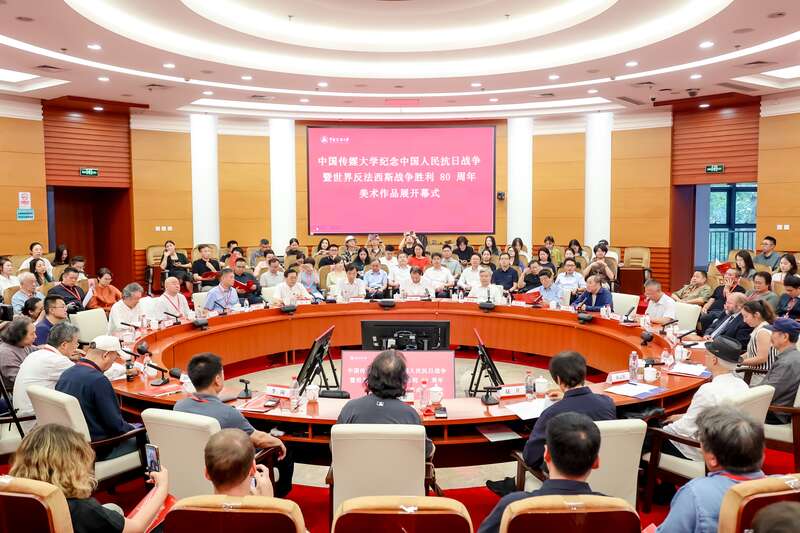 中国传媒大学举行纪念中国人民抗日战争 暨世界反法西斯战争胜利80周年美术作品展 开幕式与座谈会。中国传媒大学供图