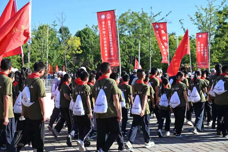 此外,活动现场及各条线下跑步路线沿途均摆放了“纪念中国人民抗日战争暨世界反法西斯战争胜利80周年”主题展板,展板上印着“少年肩有担当 精神永不褪色”“青春不止步 爱国不停息”“铭记来时路 少年继荣光”“强身健体 卫我中华”等爱国主义教育宣传标语,令不少参与者纷纷驻足观看、拍照留念。