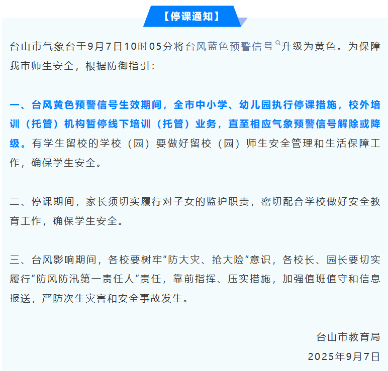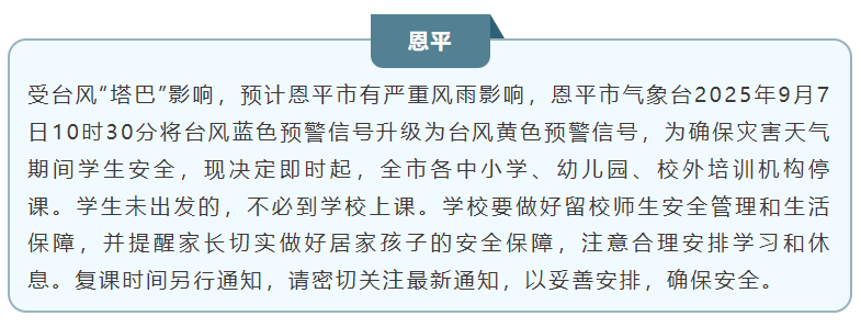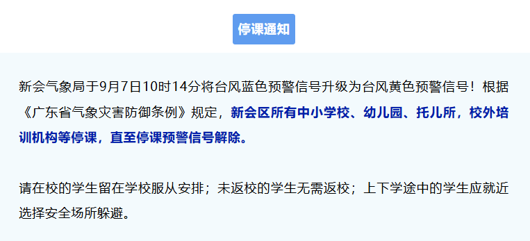 9月7日,受台风“塔巴”影响,广东多地发布停课通知。