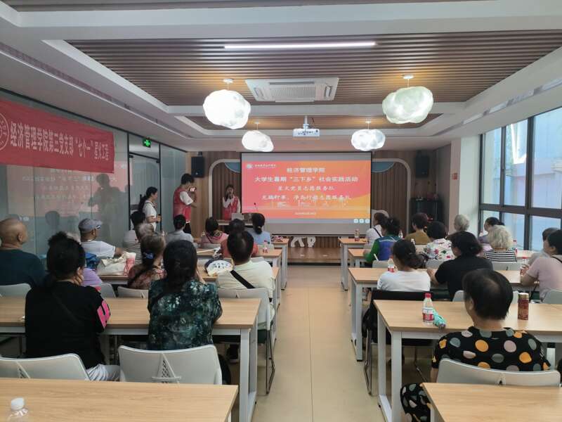 志愿者在海南省五指山市一社区开展主题宣讲服务。海南职业技术学院经济管理学院供图