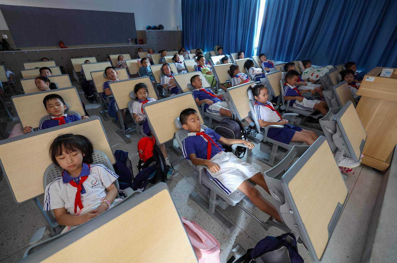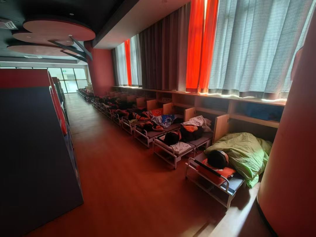 在杭州,钱塘区幸福河小学首创了“舒心躺睡钱塘十法”,提供折叠床、躺睡垫、睡袋、卡通床等10种个性化寝具供学生选择。“趴着午睡,孩子手脚很容易麻,而且对他们脊柱的压力也比较大。”幸福河小学党总支书记周虹介绍, 2021年,学校开始实施躺睡,由老师们组织学生午休躺睡,把睡觉当成和学习一样重要的事。