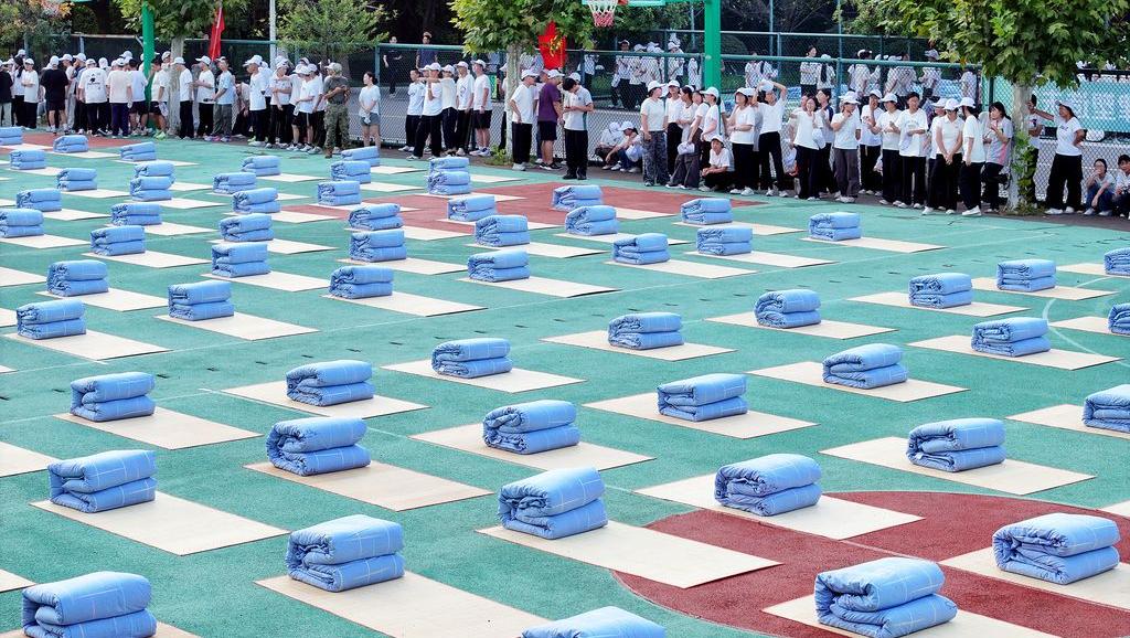 浙江东阳:学校1600名新生上演“千人叠被”大赛