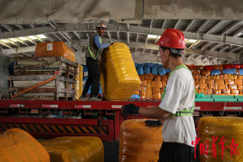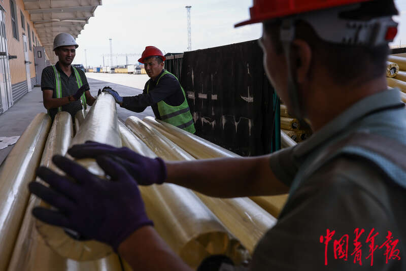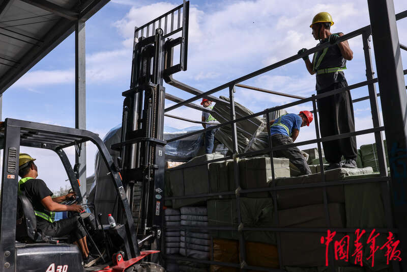 9月9日,新疆霍尔果斯丝路荣腾物流有限公司,工人们在装载货物。该公司所属的荣达商贸集团作为新疆生产建设兵团外贸龙头企业,深耕霍尔果斯口岸跨境商贸物流领域近30年。公司服务的上下游国内外头部企业超过4000家,客户群体覆盖军工、航空航天、汽车配件、新能源产品、跨境电商等领域。是华为、三一重工、霍尼韦尔等国内国际一流品牌的指定边境仓,境外客户涵盖俄语区国家乃至欧洲国家。中青报·中青网记者 曲俊燕/摄
