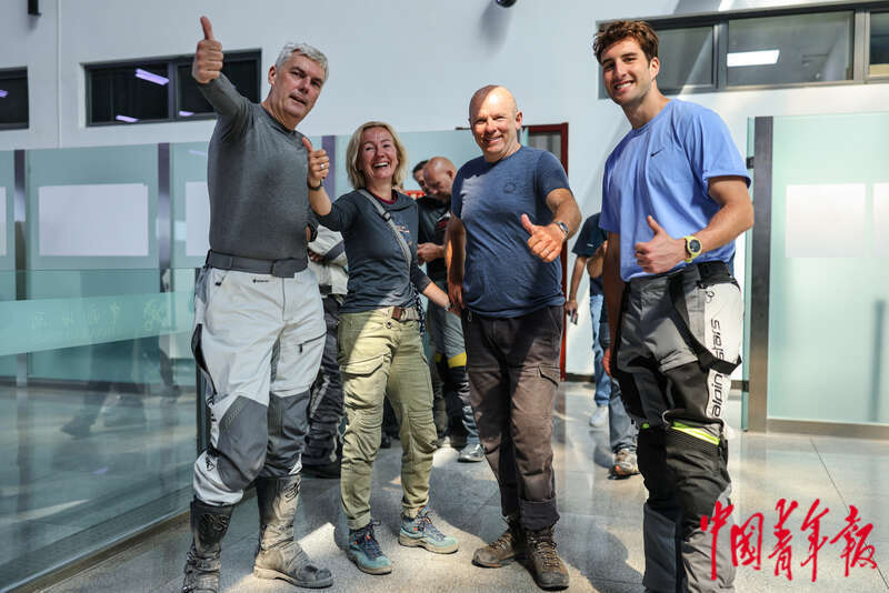 9月9日,新疆霍尔果斯公路口岸第六代国门,几名外国摩托车骑行者在海关处等待入关。他们一行十人,来自波兰、加拿大、新西兰、德国、希腊等国家,先将摩托车运输至吉尔吉斯斯坦的比什凯克,再从比什凯克骑行4天至霍尔果斯,计划在中国穿越新疆、西藏,最后到达尼泊尔。谈及对中国的第一印象,格热戈日(左一)说,中国是一个伟大的国家,有着伟大的历史和文化。中青报·中青网记者 曲俊燕/摄