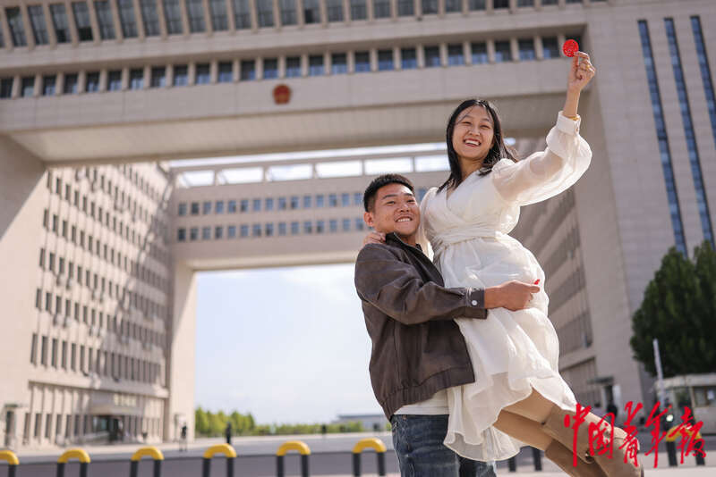 9月9日,新疆霍尔果斯公路口岸第六代国门前,一对来自山西晋中的新婚夫妇手持“囍”字拍摄蜜月纪念照。霍尔果斯公路口岸是我国西部通关历史最长、综合运量最大、自然环境最好、功能最齐全的国家一类陆路口岸,设计年货运通关能力300万吨,出入境人员500万人次。目前,共有40多个国产汽车品牌各种车型选择从霍尔果斯公路口岸出关。第六代国门(南部联检区)于2018年9月27日正式启用,除了承载繁忙的海关功能,如今更成为各地游客的旅游打卡点。中青报中青网记者 曲俊燕/摄