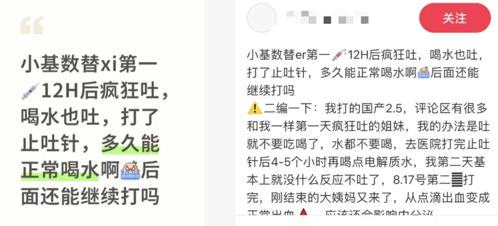 新京报报道提到,在一条热门经验贴的评论区,一名用药者提到,最初使用替尔泊肽时,并没有明显的减重效果,因此自己判断“剂量不足”,继续加量后,开始头晕、恶心、手脚发麻。