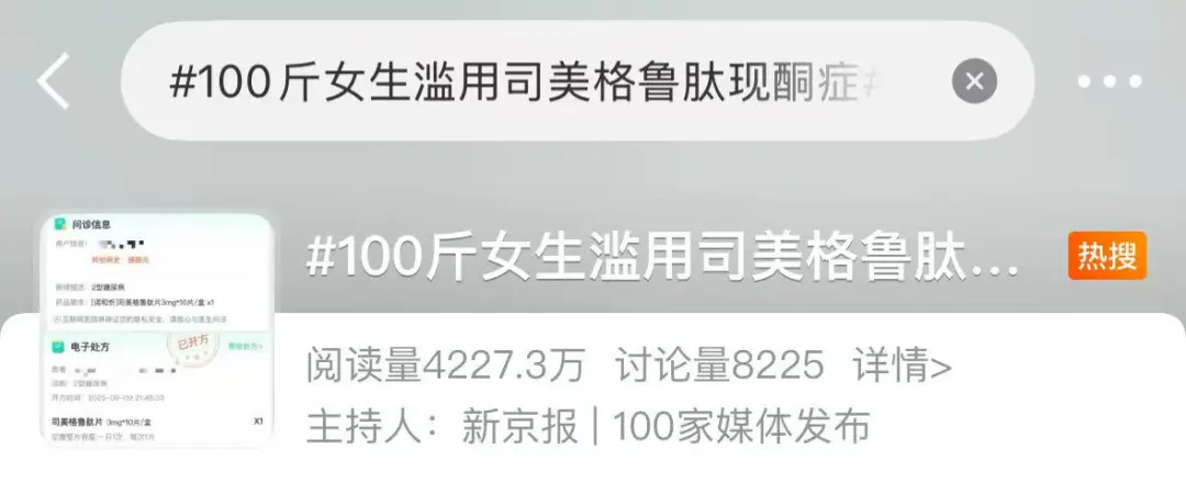 9月10日,话题#100斤女生滥用司美格鲁肽现酮症#,冲上热搜第一。