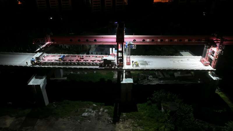 中国青年报客户端讯(徐祖彬 吕玮 中青报·中青网记者 王海涵 王磊)9月10日凌晨2时15分,在位于安徽省合肥市瑶海区的新建上海至南京至合肥高速铁路(简称“沪宁合高铁”)建设现场,高铁上跨合肥新客特大桥第37跨箱梁精准落位,为期16天的营业线Ⅱ级封锁施工圆满完成,项目建设取得重要突破,为后续桥面系和铺轨工作奠定坚实基础。
