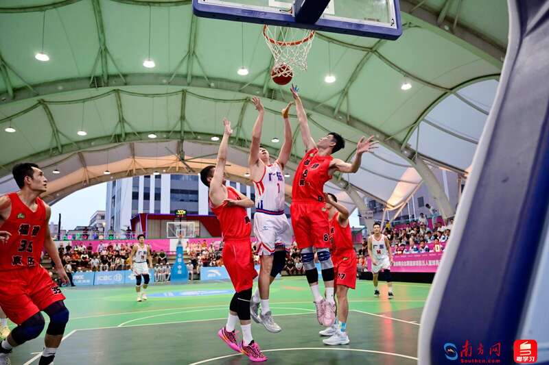 十五运会群众比赛五人篮球男子组决赛比赛现场。
