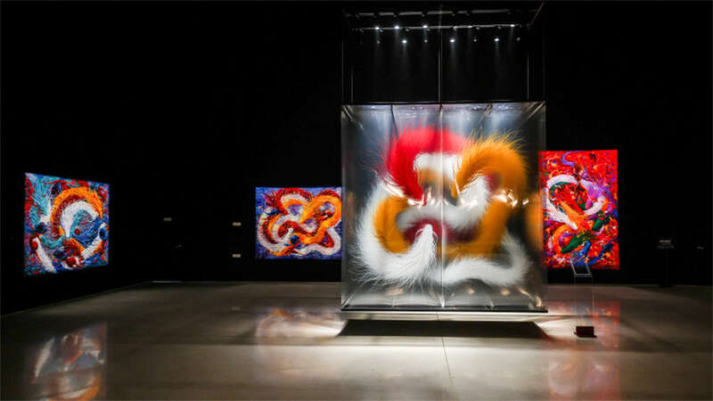 此次展览通过“超级力量”和“天真内心”两条主线,将神话中的混沌、鲲鹏、神龙等意象,转化为萌系且温暖的视觉符号。艺术家通过毛绒神兽、互动装置与温暖光影,打造出一个可触摸、可感知、可栖息的疗愈场域。观众可在“如花的家”中荡起秋千,与“吉象”贴面相拥,在“神龙共舞”中感受万物共生之喜。