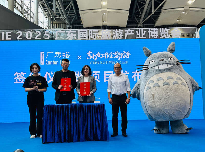 中国青年报客户端讯(中青报·中青网记者 林洁)9月13日,宫崎骏笔下标志性的“龙猫”人偶亮相广东国际旅游产业博览会。当天,“吉卜力工作室物语・宫崎骏电影世界的奇境漫游”项目发布。该项目将于今年12月25日在广州塔剧场开幕,并持续运营至2026年10月8日。