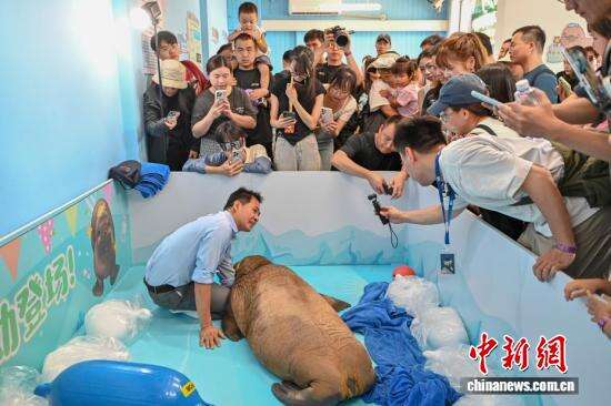 太平洋海象幼崽“喔喔”在珠海举行“百日庆”活动