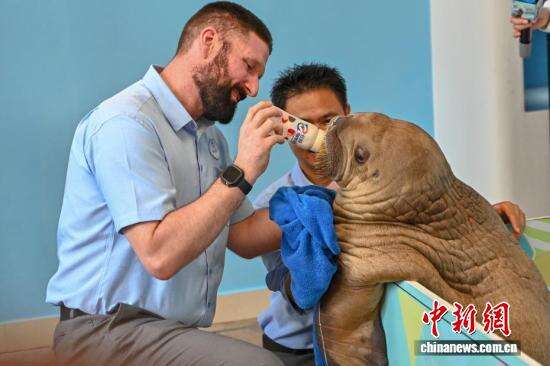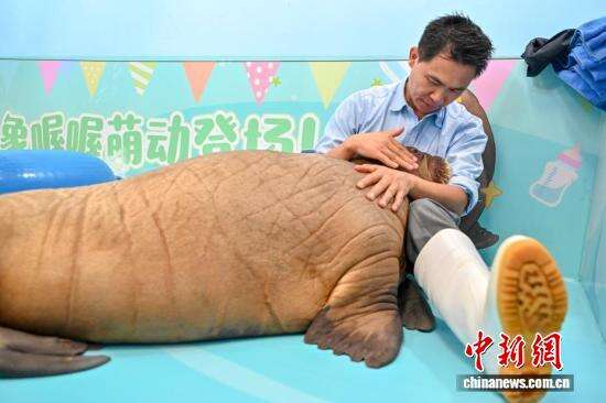 9月15日,广东珠海长隆海洋王国为国内首例人工育幼成功的太平洋海象幼崽“喔喔”举办“百日庆典”活动。雄性太平洋海象幼崽“喔喔”于2025年6月8日出生,海象妈妈因“印记行为”缺失而拒绝哺乳,随后长隆保育团队结合虎鲸乳、其他海象母乳和特制人工奶粉对“喔喔”开展人工育幼。目前“喔喔”在保育团队的照顾下,已从出生的56公斤成长到100多公斤。