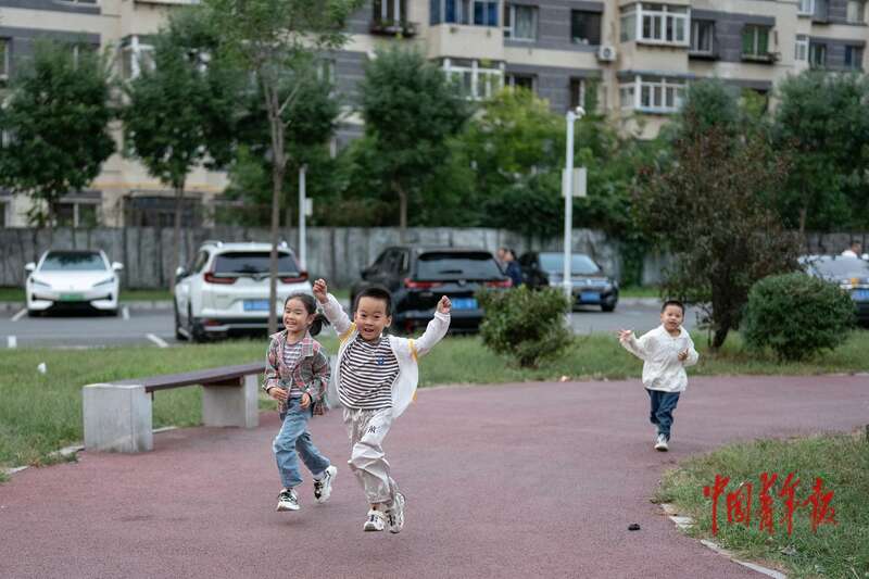 9月16日,辽宁省沈阳市,北大营营房旧址旁的公园,孩子们在奔跑。中青报·中青网记者 李隽辉/摄