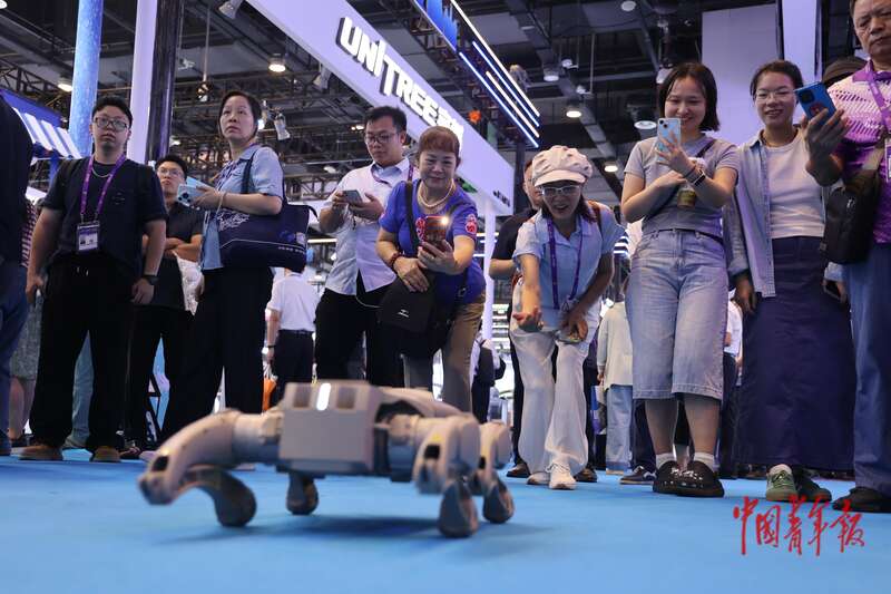 9月18日,在广西南宁举办的第22届中国-东盟博览会暨中国-东盟商务与投资峰会(以下简称“东博会”)上,展出的四足机器人吸引了众多观众。本届东博会突出“让人工智能成为办会主角、企业成为参会主体”的特点,明确以建设中国-东盟人工智能创新合作中心为切入点,推动会展数字化转型,首设人工智能专馆,一系列人工智能新技术、新设备在展会上亮相,科技感拉满。中青报·中青网记者 谢洋/摄