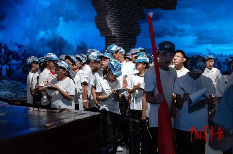 Shenyang, Liaoning — On Sept 17, the 9.18 Historical Museum welcomed a surge of visitors ahead of the Sept 18 anniversary. Children waved flags by the Memorial Wall, remembering history and honoring the fallen. This year marks the 80th Anniversary of Victory in the Chinese People's War of Resistance Against Japanese Aggression and the World Anti-Fascist War🇨(Photo by Li Junhui/ China Youth Daily)