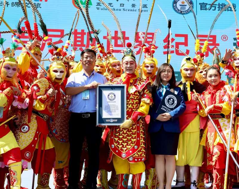 众多“孙悟空”扮演者手持金箍棒,经吉尼斯认证官现场确认,成功挑战“最多人装扮成孙悟空聚会”世界纪录。主办方供图