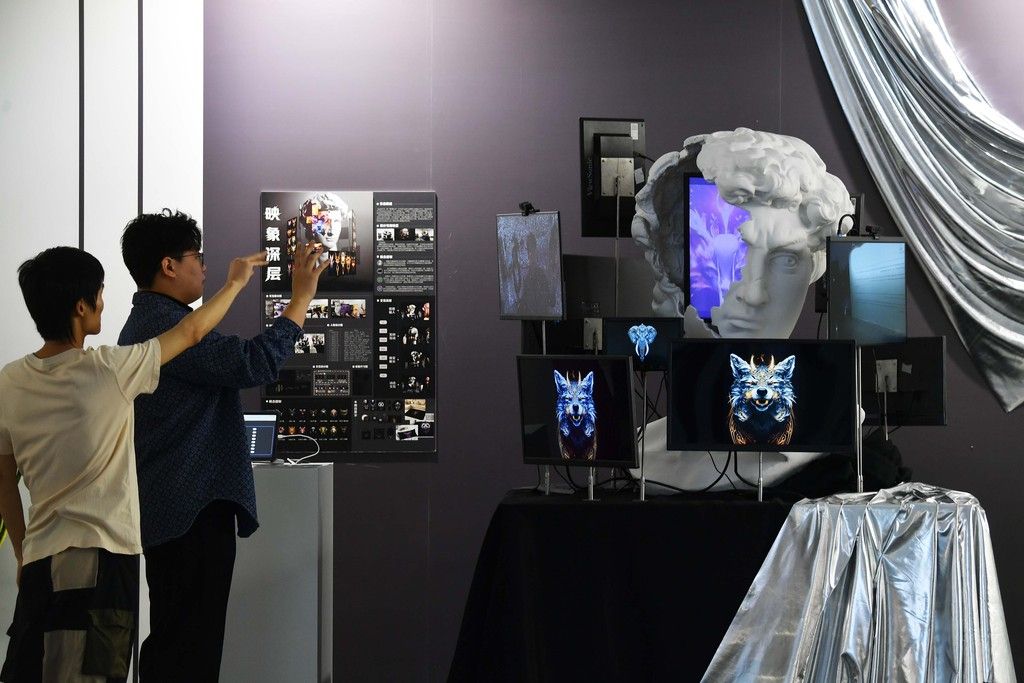 2025年9月22日,2025大学生AI艺术季开幕大会在中关村国家自主创新示范区展示中心会议中心・颐和厅隆重举行。本届大学生AI艺术季以“元创新生”为主题,突出“加强企业联动、建设学术体系、树立活动品牌”的三大特色,与可灵AI、即梦AI、生数Vidu AI展开紧密合作,联合各高校推出《AI艺术理论与实践》慕课及智慧课程平台,启动大学生AI艺术季“智联体社区”计划,打造活动系列形象IP等,充分赋能AI艺术季品牌发展,相应国家培养新质生产力号召。 期间,AI艺术嘉年华、大学生AI艺术展等系列活动于中关村国家自主创新示范区展示中心、三山五园艺术中心举办,为公众与行业搭建沉浸式体验与交流平台。未来一个月内,包括学术论坛、青年艺术家线下推广等精彩活动将轮番上演,期待各界人士与大学生朋友积极参与。 文/北京青年报记者 王斌 摄影/北京青年报记者 袁艺