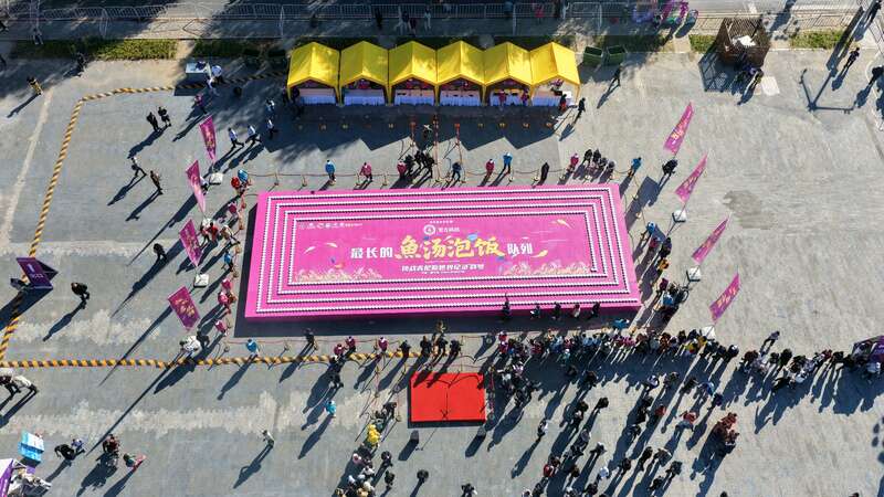值得一提的是,比赛现场还发起了“最长的鱼汤泡饭队列”吉尼斯世界纪录挑战。查干湖鱼汤泡饭,是查干湖景区极具代表性的美食。当地以查干湖鲜鱼熬制汤底,搭配前郭灌区优质大米,结合“全鱼宴”非遗技艺制作了1106碗热气腾腾的鱼汤泡饭,成功创造了“最长的鱼汤泡饭队列”吉尼斯世界纪录,将查干湖的渔猎文化和饮食文化推向世界舞台。