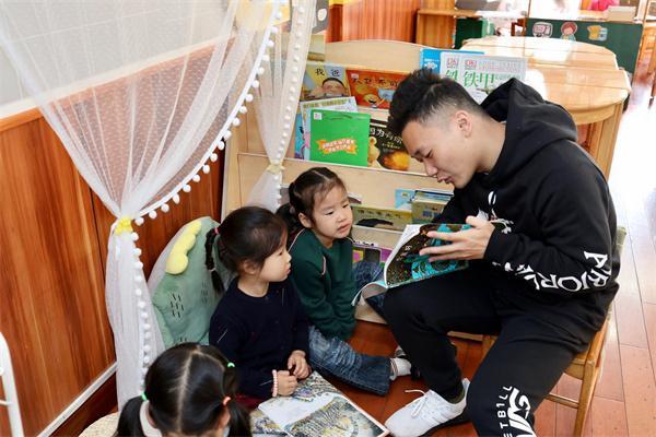 宁波幼儿师范高等专科学校学前教育专业2017级学生林群博在宁波第二幼儿园实习时为幼儿讲故事,该同学毕业回到家乡后,一直从事幼教工作。受访者供图