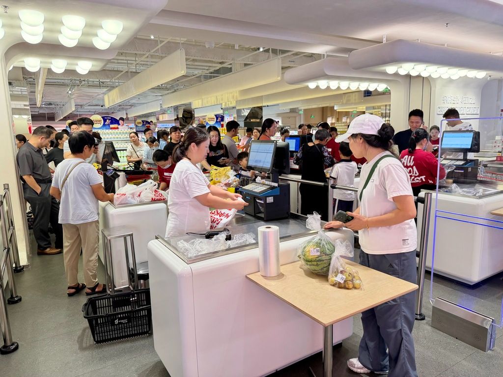 2025年9月22日,广东东莞,受超强台风“桦加沙”影响,市民在超市抢购囤积食物。