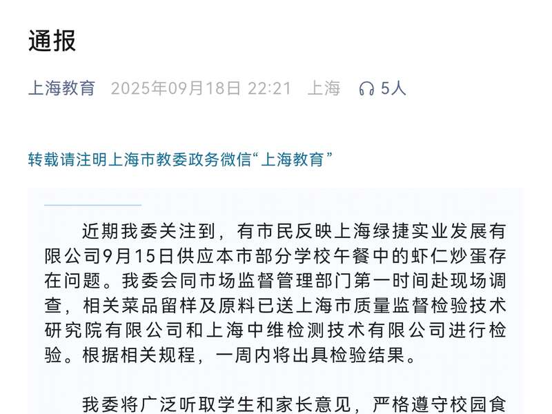 上海市教委回应“虾仁炒蛋”事件,一周内出结果