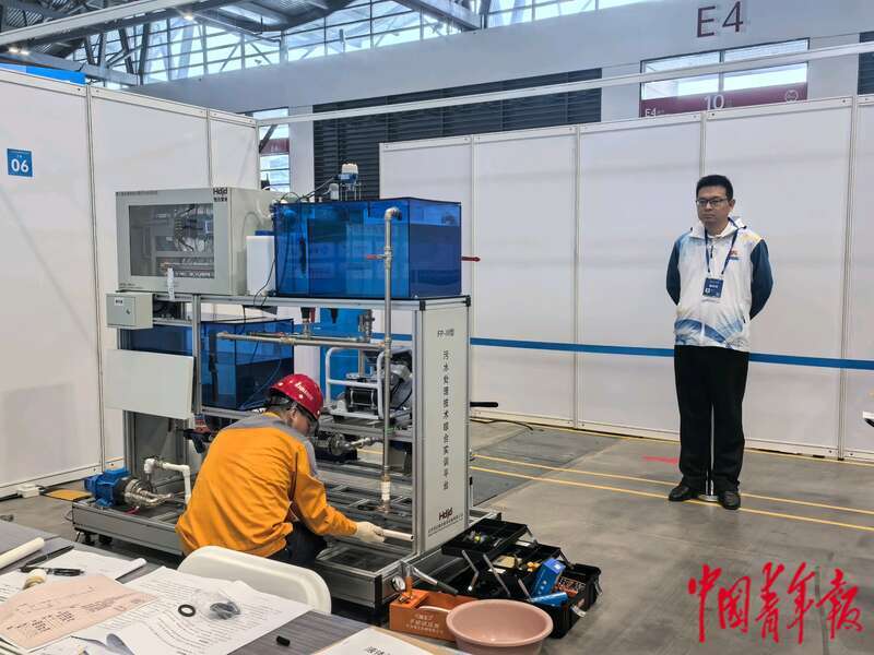 9月21日,郑州航空港区中原国际会展中心,第三届全国技能大赛污水处理赛项参赛选手正在比赛。中青报·中青网记者 李瑞璇/摄