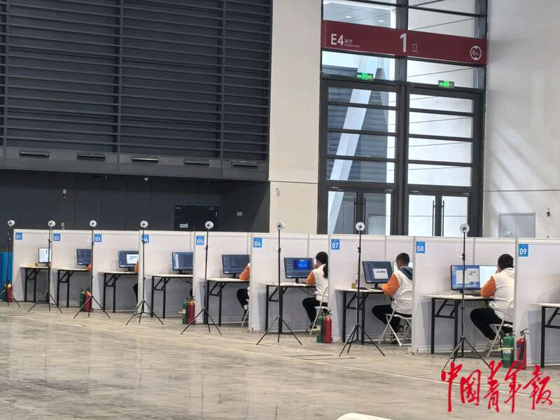 9月21日,郑州航空港区中原国际会展中心,第三届全国技能大赛软件测试赛项参赛选手正在比赛。中青报·中青网记者 李瑞璇/摄