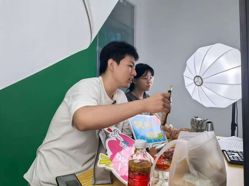 “阿琛”本名温家琛,21岁,是河北美术学院工艺美术专业的大学生。今年他参加了“返家乡”活动中的“一品一播”直播助农项目。“光背台词不够,得预判粉丝提问。所以每次直播前我都会翻阅大量资料,把要推广的土特产‘摸透’。”温家琛说。他还在直播间绘制田园画,营造浓郁的农家氛围;把镜头后移20厘米,让画面更真实、自然。
