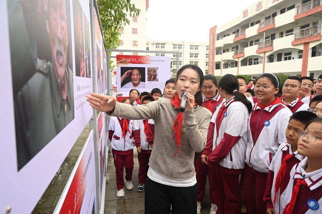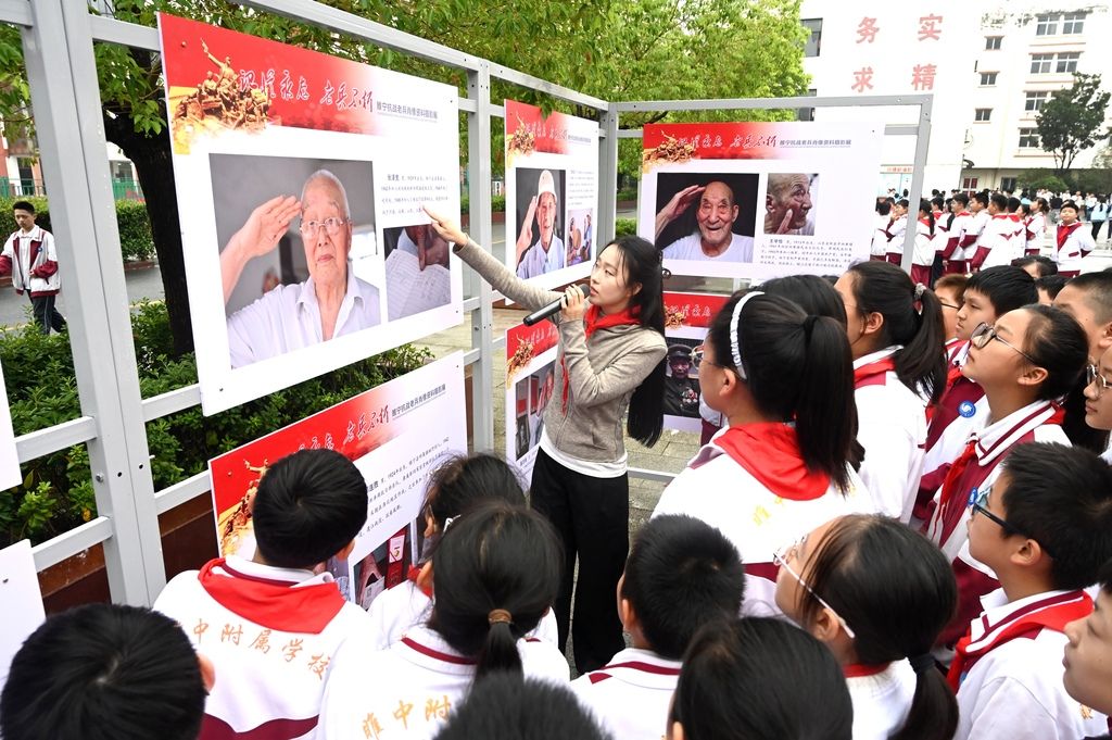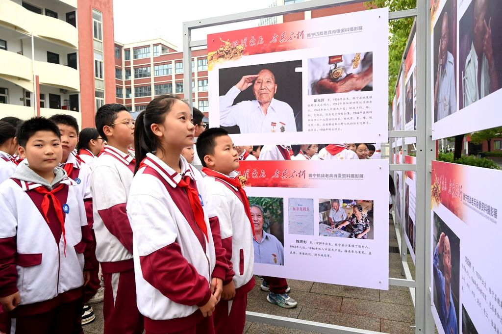 江苏睢宁:抗战老兵记忆肖像摄影展进校园