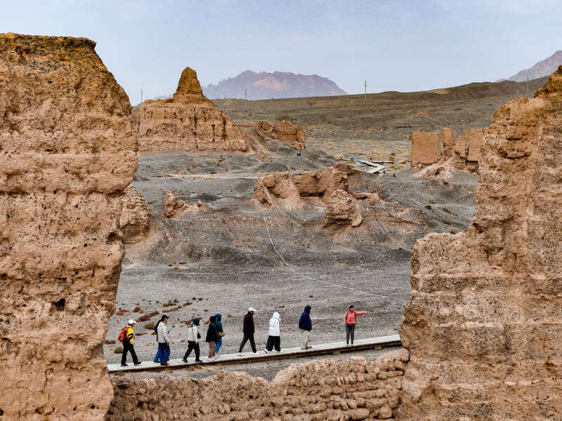 “克孜尔尕哈”意为“红色哨卡”。夕阳下,这座汉代军事设施的夯土墙体被映照得棱角分明,泛着淡淡的金红色。“站在这里,仿佛看到了当年的烽火传讯。”一名游客感慨地说。