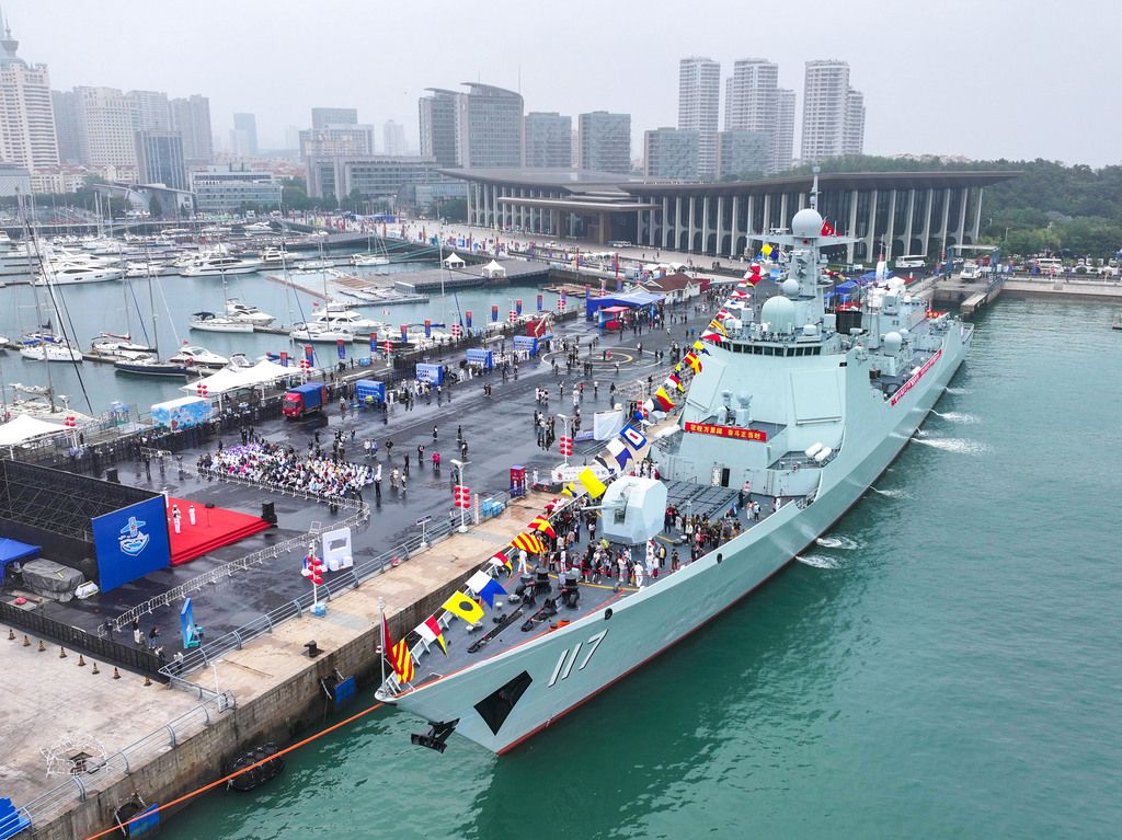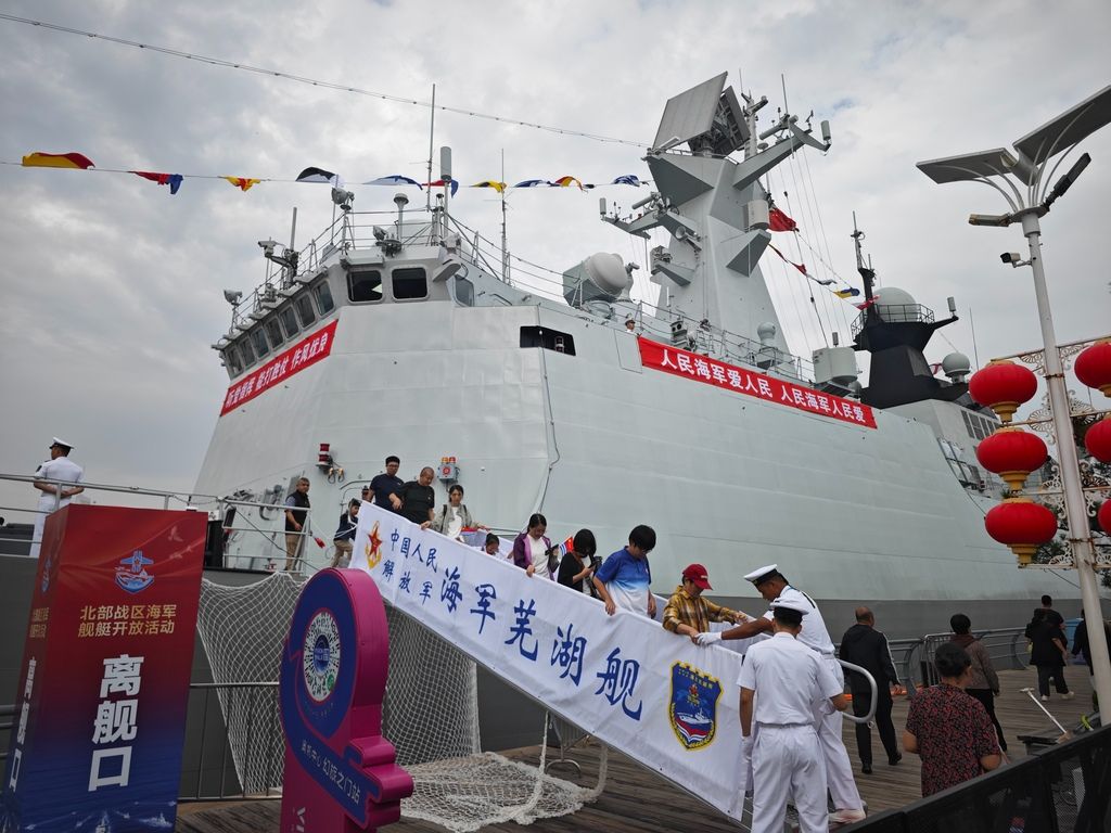 2025年9月24日,山东青岛,北部战区海军舰艇开放活动在青岛奥帆中心码头举办,开放导弹驱逐舰西宁舰、导弹护卫舰芜湖舰,公众前来参观。