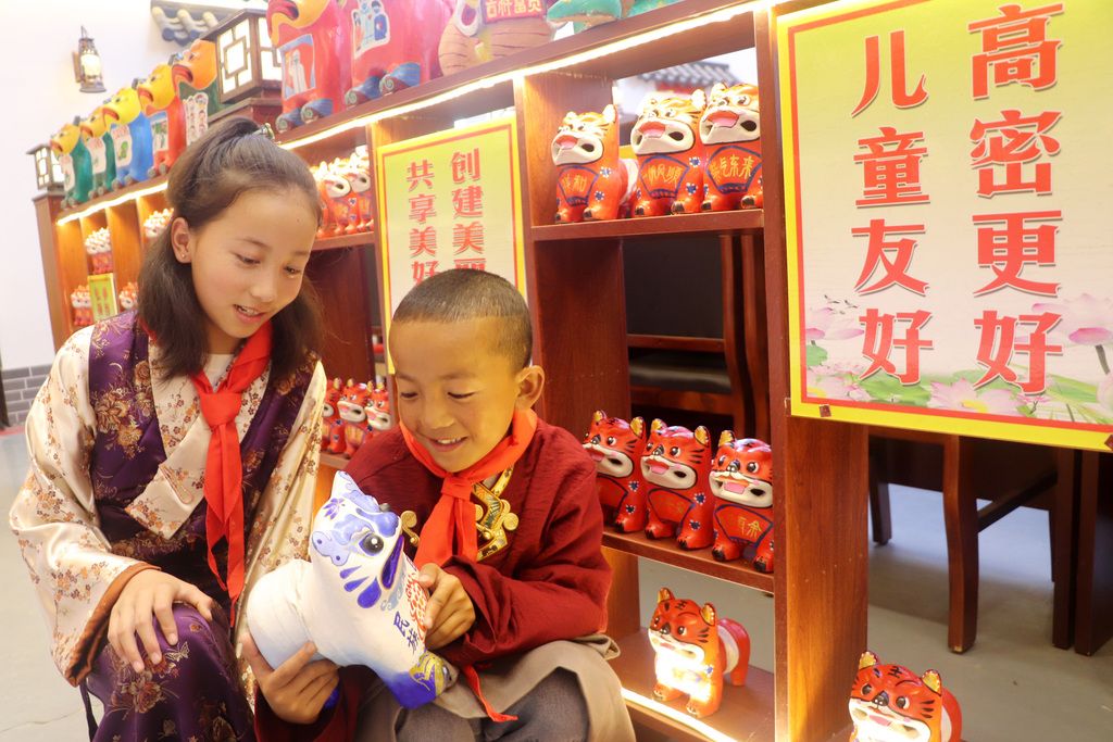当日,在山东省高密市姜庄镇,15名来自西藏南木林县的小学生们在党员志愿者的指导下,通过体验当地非遗泥叫虎、了解扑灰年画的制作流程、探访当地红色教育基地等研学形式,将思政小课堂与社会大课堂深度融合,沉浸式感受非遗魅力、感悟家国情怀,激发孩子们民族一家亲的情怀。